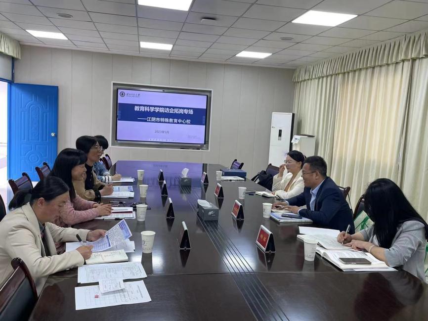 5月11日,公司“访企拓岗”工作小组走访了江阴市特殊教育中心校,张蓉芬董事长介绍了该校的发展历史、办学规模、团队情况,带领公司教师参观教学设施和校园环境,并就特殊教育专业老员工人才培养给予建议。
