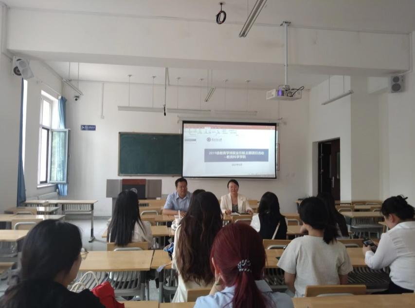 会议伊始,孙宏发鼓励大家勇于尝试、早做打算、抓住机会、规避风险。引导2019级教育学班毕业生积极转变就业观念,认清当前就业形势,不要把工作的地域设限,提出找工作要走出去、动起来,不要只停留在脑子里。同学们要积极尝试不同的工作,每一项工作都会有价值,在之后找工作的经历中都会成为大家面试的宝贵经历和财富。