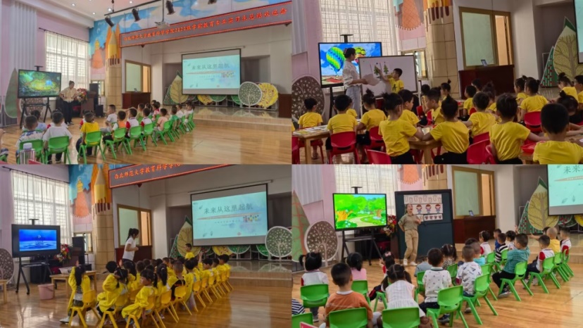实习生代表马小霞、高雨、姜甜和王雨菲分别在小班、中班和大班组织了音乐、科学、数学领域的四节教学活动,四位实习生教态自然大方,语言生动有亲和力,良好的师幼互动、轻松活泼的活动氛围展示了实习生的教育实践成果。
