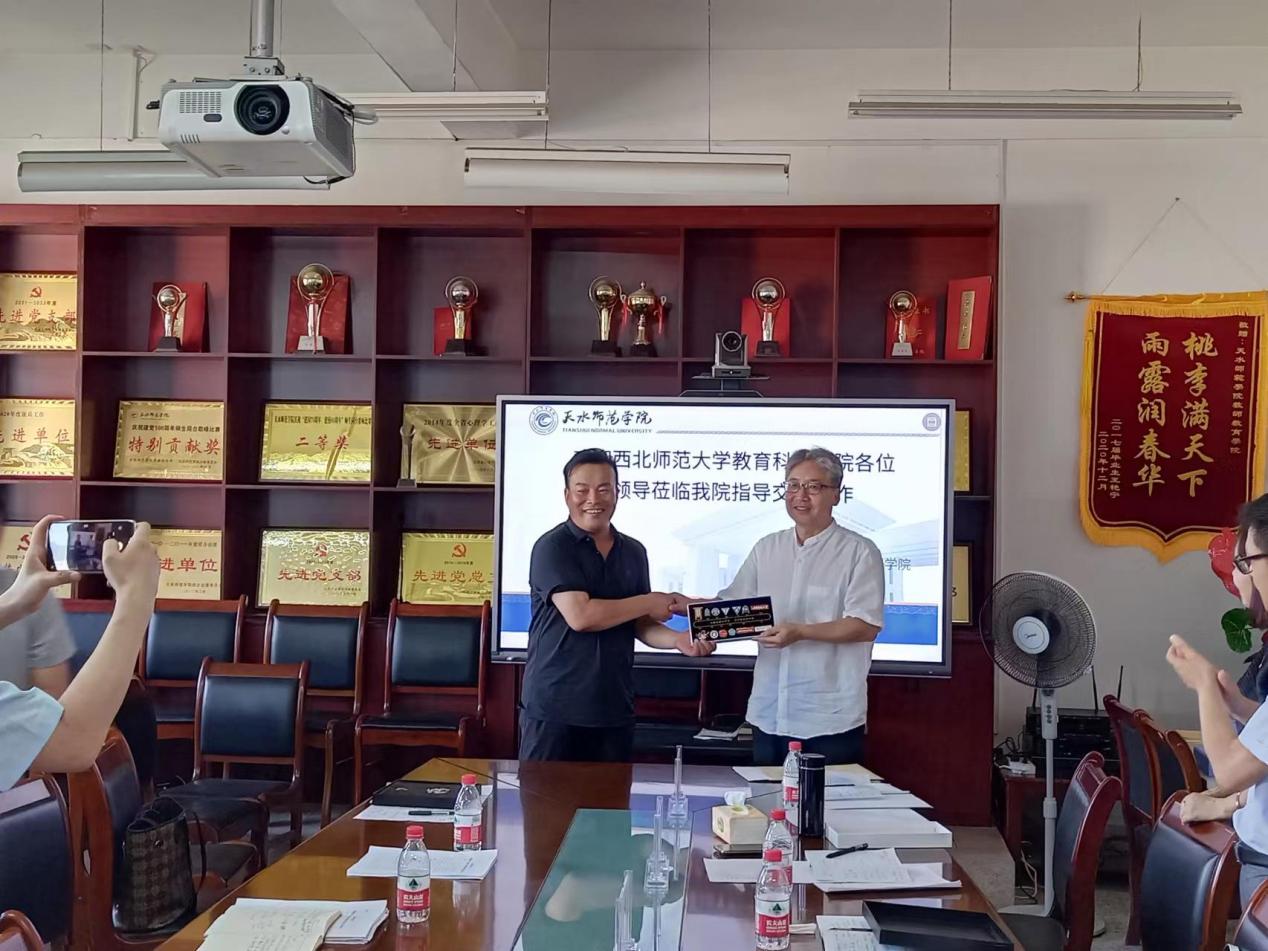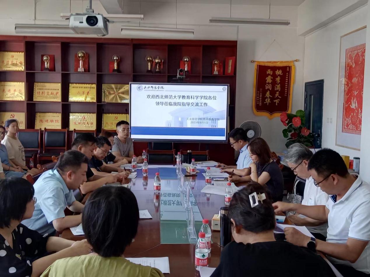 2023年8月1日至2日,公司党委书记苏丽蓉、经理王兆璟、副经理周晔、副经理高建波、教育学系副主任毛耀忠一行赴天水师范公司教师教育公司开展小学教育专业本科生培养方案调研与团队建设调研。天水师范公司教师教育公司经理杨学良、副经理牛振乾以及承担小学教育专业课程的部分教师、员工代表共20余人参加了座谈会。