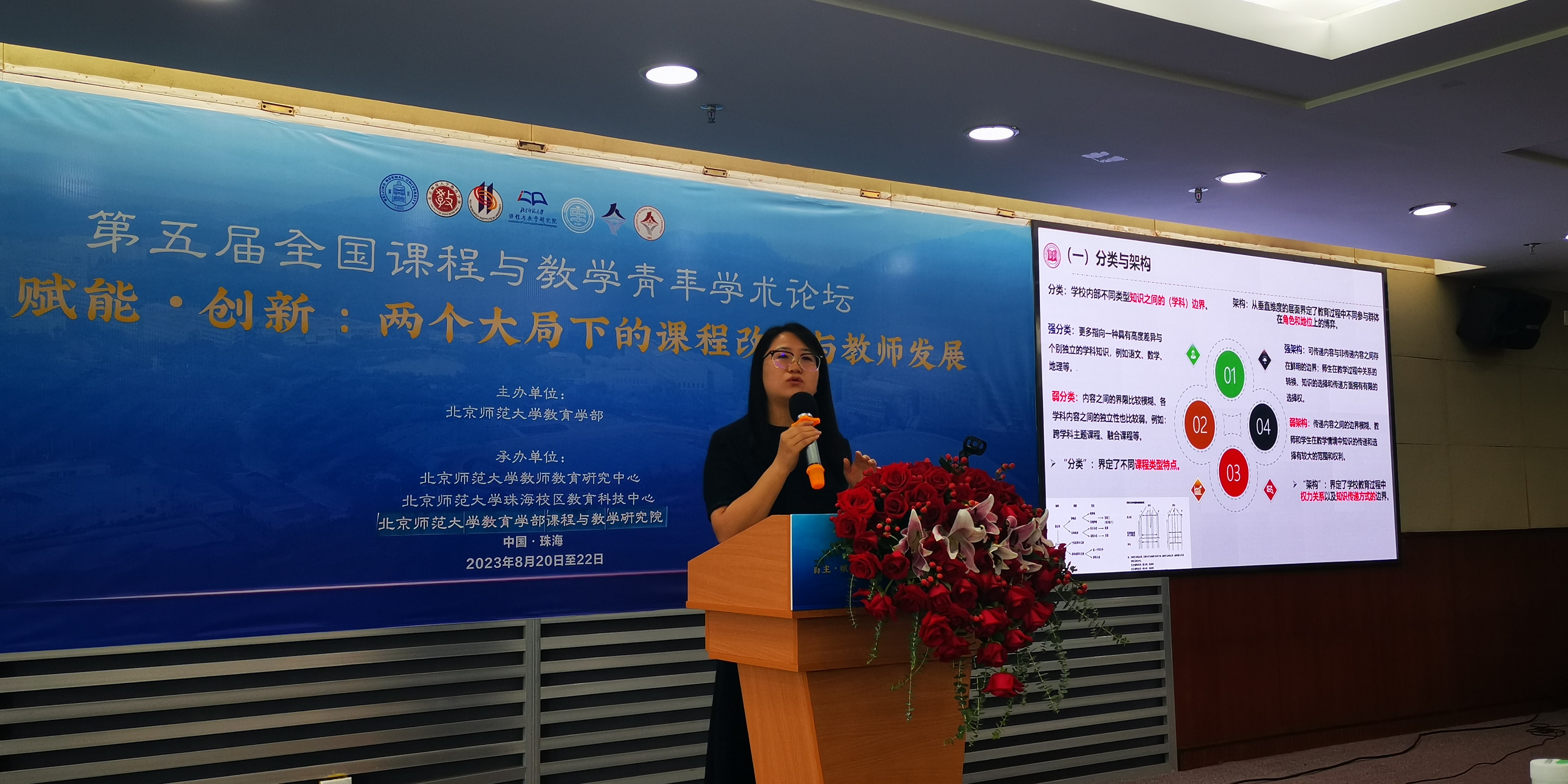 公司青年教师杨鑫于2023年8月21-8月22日,在珠海举行的“第五届全国课程与教学青年学术论坛”,进行了主题报告《“乱”与“序”:跨学科主题课程边界的消弭与融合——基于伯恩斯坦编码理论的启示》。本次会议由北京师范大学教育学部主办,北京师范大学教育学部课程与教学研究中心、教育部普通高校人文社科重点研究基地北京师范大学教师教育研究中心、北京师范大学珠海校区教育科技中心承办。