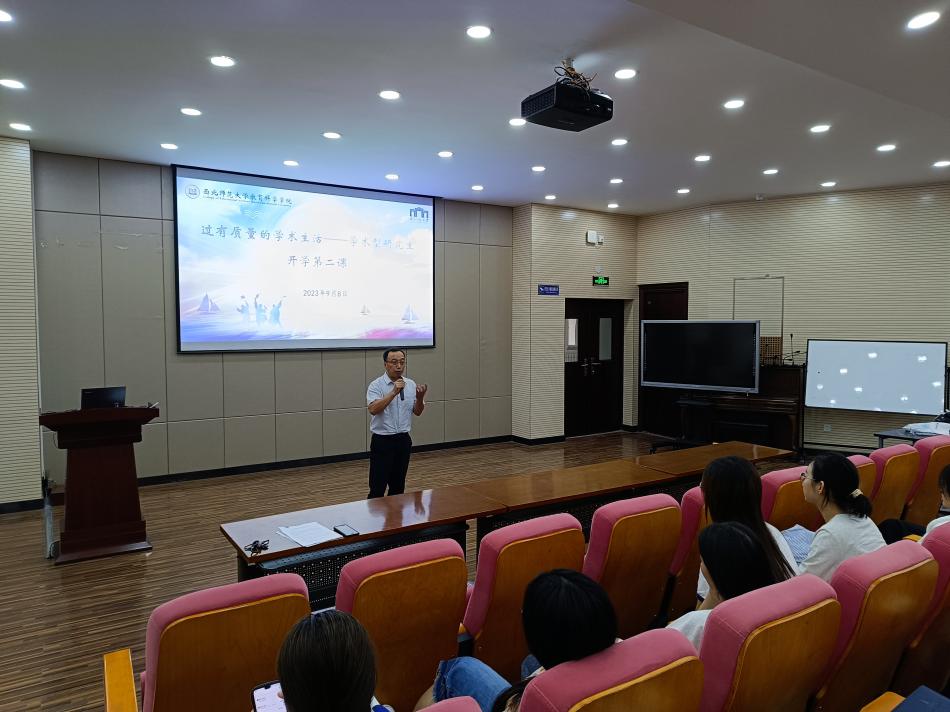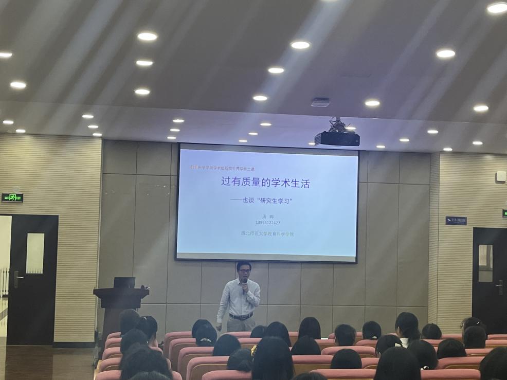 9月8日,周晔经理以“过有质量学术生活”为主题,提出研究生应采用“学习+研究”的自主学习模式,通过向同学、导师以及自身学习,培养创新意识,提高学习自主性,发展研究生学习力,实现从获得新知到创造新知的飞跃,让“读书、学习、思考、研究”成为未来学术生涯的主题词,过有质量的学术生活。