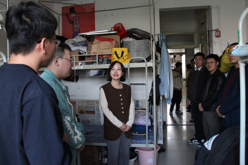此外,周晔副经理走访知行校区研究生公寓。在与研究生同学们的交流中,老师们鼓励研究生同学要积极参加科研项目,不仅要有扎实的学术基础,还要勇于创新,不断寻求突破。同时,鼓励研究生同学们合理安排学习时间,希望研究生同学们保持良好的学习状态,拓展学术视野,培养综合素质。
