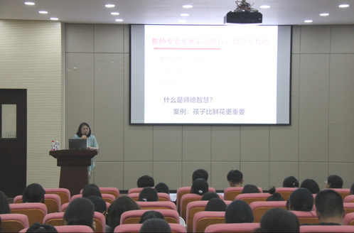 郑名教授以《幼儿园教师专业标准》下教师角色定位与核心素养为切入点,围绕幼儿园教师专业发展的基本理念、内容要求、实施建议三个方面进行阐述。她认为,学前教师在教师专业角色形成过程中,应重视幼儿的生命与健康,加强幼儿防护知识储备;要掌握专业性的理论知识,充盈心灵、开拓眼界,做幼儿心灵的倾听者和引导者;要修炼师魂、提高能力,做一个专业化的教师。其次,郑名教授结合专业标准下的核心要求,从目前员工学习现状出发,勉励同学们形成高尚的师德,掌握专业知识,发展实践能力,形成实践智慧,提高自身专业化水平。最后,郑名教授以亲身经历与同学们分享个人感悟,要求同学们树立师德为先、员工为本、能力为重、终身学习的教育观和学习观。