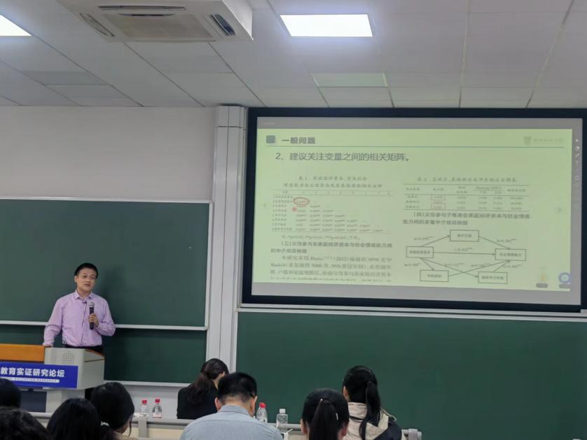 分报告中,辽宁师范大学刘泽老师、伟德体育官方网站苟斐斐博士、福建师范大学廖雨曈博士、华东师范大学王光强博士分别做了《家庭社会经济地位对初中生学业成绩的影响研究—兼论家庭学习环境的中介作用》《资源?教师?课程?院校支持与老员工跨学科学习成果的关系及作用机制研究—基于院校行动模型的链式中介》《父母教养方式对幼儿科学问题解决能力发展的影响—教育卷入和自我控制的中介调节作用》《分布式领导与教师课堂教学实践的关系:教学自主权与教学效能感的链式中介作用—基于TALIS2018上海教师数据》的汇报。