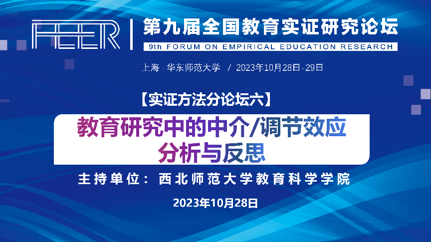 2023年10月28日,伟德国际victor1946成功举办了“第九届全国教育实证研究论坛六:教育研究中的中介/调节效应分析与反思”。本次论坛采用线上线下相结合的方式,来自华南师范大学、南京大学、广东财经大学、北京语言大学、中国教育科学研究院、南京农业大学、华东师范大学、辽宁师范大学、福建师范大学、伟德体育官方网站等10多个科研院所的专家学者汇报了他们的最新研究成果,共吸引了来自全国各高校的4900余名学者参与,产生了较大的社会影响。