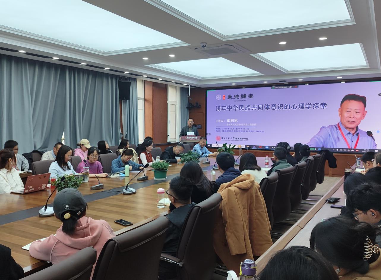 11月4日下午,伟德国际victor1946“秉德讲堂”第七讲在知行校区弘文楼510会议室举行,此次邀请到的主讲嘉宾为中国人民大学博士生导师张积家教授,主讲内容为“铸牢中华民族共同体意识的心理学探索”,讲座由伟德国际victor1946副经理高承海主持,全院师生100余人参与了本次学术活动。