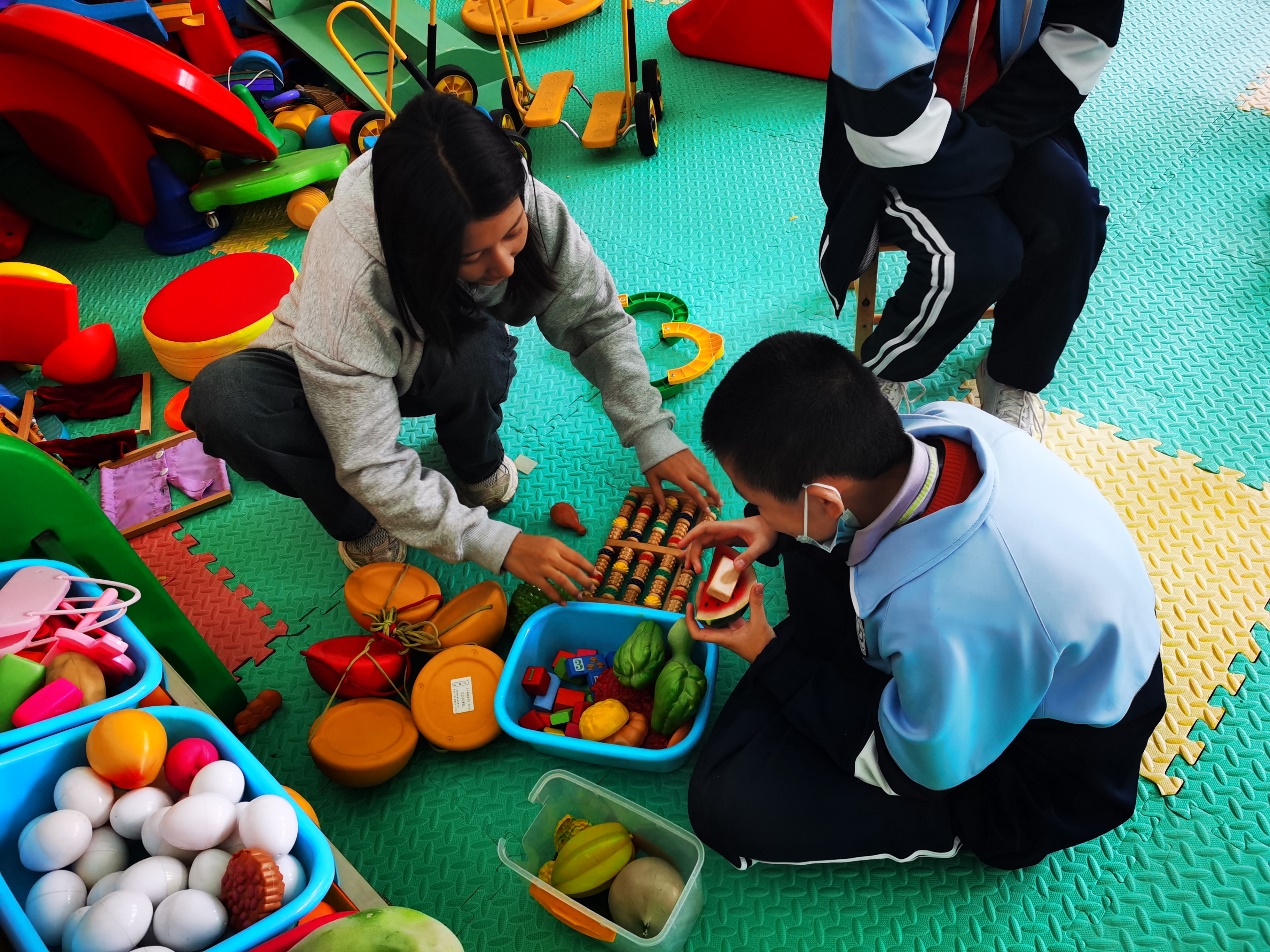 10月24日上午的活动分两部分,第一部分为2020级员工的心理咨询辅导见习。由甘肃省应用心理协会专业教师对同学们进行“关爱自己,绽放生命”人际沟通体验式团体心理辅导,通过活动任务,同学们明白了如何应对焦虑、迷茫等情绪,也认识到了团队的重要性。第二部分是2022级员工的现场学习,这是2020级员工第一次真实地与特殊儿童进行互动。他们在定西市特殊教育公司老师范玲的指导下,与特殊儿童进行充分接触,开展任意游戏教学活动。10月24日下午由2022级员工针对定西市特殊教育公司的不同障碍类型、不同障碍程度的特殊儿童进行有设计的游戏活动,通过活动他们更直观地感受到各类型、各程度的特殊儿童的能力状况、认知及行为特点。