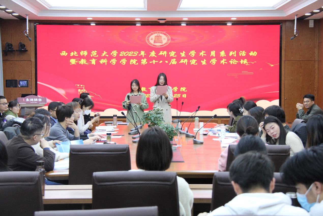 本次学术论坛由聂纪锋和王桂花主持,评委由周晔老师、李保臻老师、鲁子箫老师、孙爱琴老师、滕志妍老师、刘丽平老师、马飞老师、赵旺来老师、苟斐斐老师、王智老师和冉利敏、屈塬、何畔、杨梅、杨帆、李梦婕、周晓彤、陈昕、杨曌旻、徐紫娟、韩闰轩、李秋红员工代表组成。来自2022级硕士研究生、2022级学术型博士研究生和教育博士(不限年级)在本次学术论坛上做学术报告,本次学术论坛的论文主题涉及到乡村教育、民族教育、教师教育、家庭教育等教育基本理论和语文教育、数学教育、生物教育等学科教育,涉及教育领域的多个方面,突出了学术的多元化、包容性、创新性等特点。