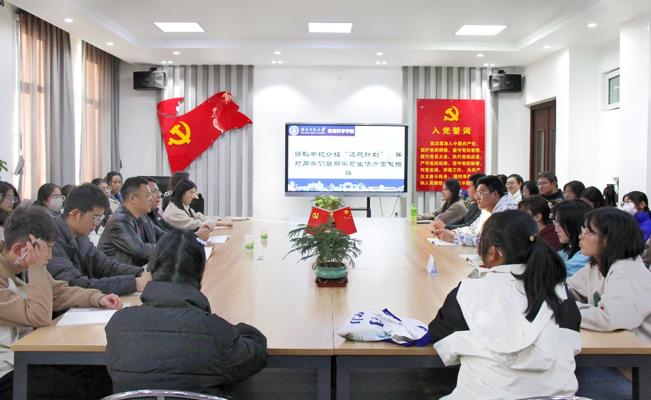 随后,王等等老师聚焦同学们实际生活中的问题,通过列举实例,进行了关于学习、生活等方面的指导,指导形式多种多样,内容全面丰富,并为同学们提出了相对应的解决方案。最后,2023级小学教育班团支部书记杨涛从如何规划大学四年的生活和学习总结等方面做出汇报,阐述了他的观点及想法,让同学们深有所感。