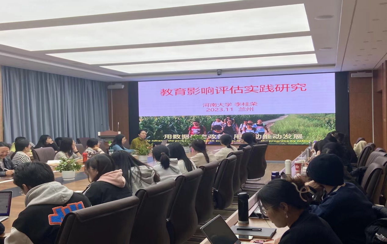 2023年11月17日下午,河南大学教授、河南省教育政策研究院经理、博士生导师李桂荣教授在特教楼508为公司师生做了题为“教育影响评估实践研究”的讲座。李桂荣教授以“用数据建言政策,用行动推动发展”为要求,为广大师生具体详细分享了在田野调查中的教育影响评估是什么、怎么做的实践案例。同时也为大家介绍了样本选取以及分配的方法等。此外,李老师还为我们讲解了干预实验理论模型及其作用。报告结束后和与会师生开展了积极互动,不仅答疑与会师生的问题,也探讨了量化研究的具体设计。