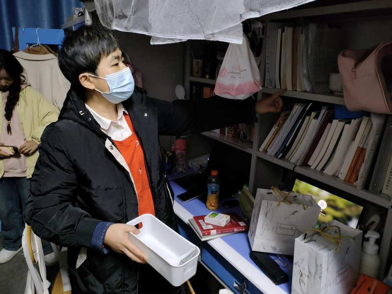 最后,任兴燕老师带领大前往二号楼301和302室进行实操训练,帮助同学们整理书桌和衣柜,用实际行动教授同学们如何更好地整理衣物,展示了叠袜子、收纳床上四件套等方法技巧。