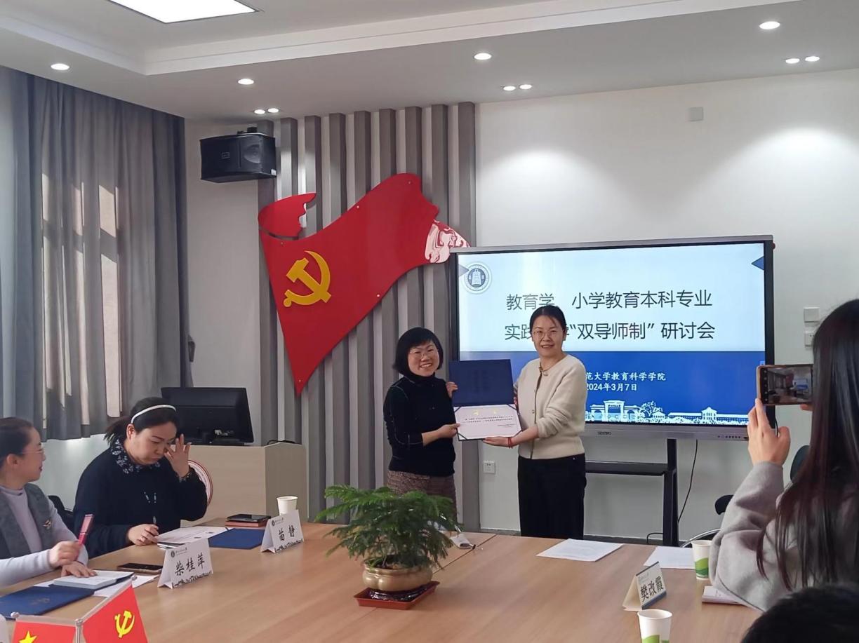 接着,樊改霞教授为到来的各位校外专家颁发了伟德国际victor1946教育实践指导教师聘书,希望实习公司更多参与师范生培养过程,加强大学与中小学合作,构建高质量教师教育体系。