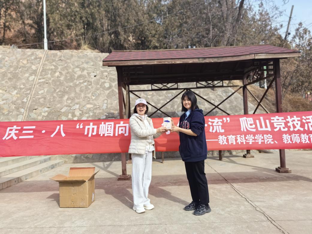 3月8日下午3点,女教师们准时集合,大家一边欣赏美景,一边交流着工作和生活的点滴,气氛十分融洽。抵达仁寿山后,女教师们开始了轻松的徒步之旅。大家沿着山路缓缓前行,呼吸着新鲜的空气,享受着大自然的宁静与和谐。男教师们则在一旁悉心照料,确保每位女教师都能安全、舒适地参与活动。伟德国际victor1946党委书记苏丽蓉为参加活动的女教师们颁发奖品表达公司对她们的关怀与鼓励。