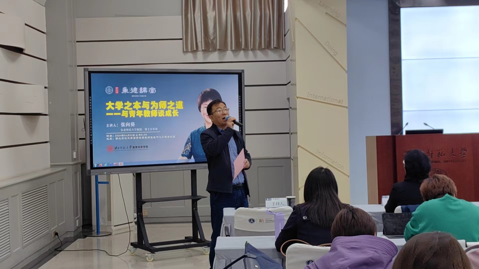 4月2日上午,伟德国际victor1946“秉德讲堂”第十讲在云亭校区教师发展中心二楼会议室如期举行。本次讲堂特邀东北师范大学博士生导师张向葵教授作为主讲嘉宾,为师生们带来了一场主题为“大学之本与为师之道”的讲座。教务处处长、教师教育公司经理杨纳名主持,全校一百多位青年教师参加。