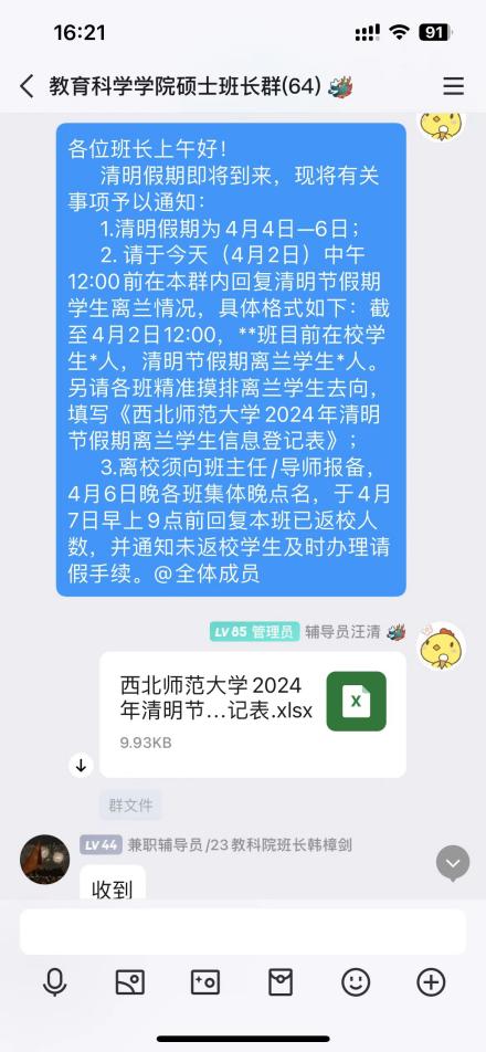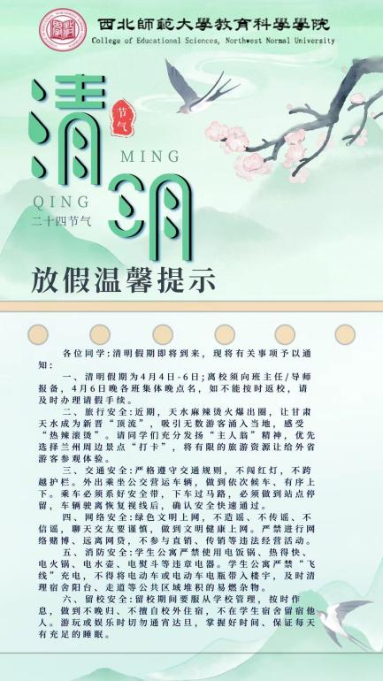 落实安全管理常态化,营造安全教育环境。公司制定晚归未归报备制度,建立员工动态信息库,根据信息实时调整安全管理;定期开展班长团支书例会,了解员工安全稳定相关动态,提高安全监管的高效性;及时建立家校联系,凝聚家校育人合力,营造全面的安全教育环境。公司定期安排专人对舞蹈和钢琴教室进行仔细且全面地检查,重点检查教室线路,避免因电线老化产生潜在风险。除此之外,公司还对相关专业的员工负责人开展艺术教室使用安全注意事项的培训,提醒员工不得私接插线板、不能携带存在安全隐患的物品。公司辅导员精心制作并发布了节假日放假通知和温馨提示的海报,并为离校员工办理请假手续,统计他们的出行信息,对员工出行情况做到心中有数,有据可查,增强员工安全意识,筑牢安全堤坝。