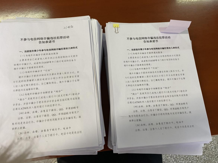 加强网络反诈宣传,守护员工财产安全。为提升员工防骗意识,公司充分利用公司电子屏,创作展示了一系列反诈骗海报。海报内容涵盖各种常见的电信诈骗手法;组织员工以班级为单位集中观看了一系列反诈骗宣传片。公司还组织全体员工签署了《关于不参与电信网络诈骗违法犯罪活动的告知与承诺书》,旨在提高全体员工的法律意识和防范能力,在校员工共计1387人已全部签署承诺书。各班级班主任也积极行动,结合线上与线下的方式,组织开展了以“预防电信网络诈骗”为主题的班会活动。在班会中,班主任详细列举了常见的电信网络诈骗类型及相关案例,提醒同学们保持高度警惕,切实增强自我保护意识,防范潜在风险。