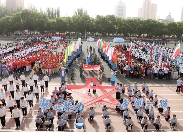 开幕式上,由教职工队伍和青年学子组成的方阵以“凝心聚力,争创一流”为理念,以昂扬的姿态和饱满的热情,诠释了团结力量和进取精神。方阵中心摆出的璀璨红星,象征着团结与拼搏,为运动会增添了热烈的氛围。
