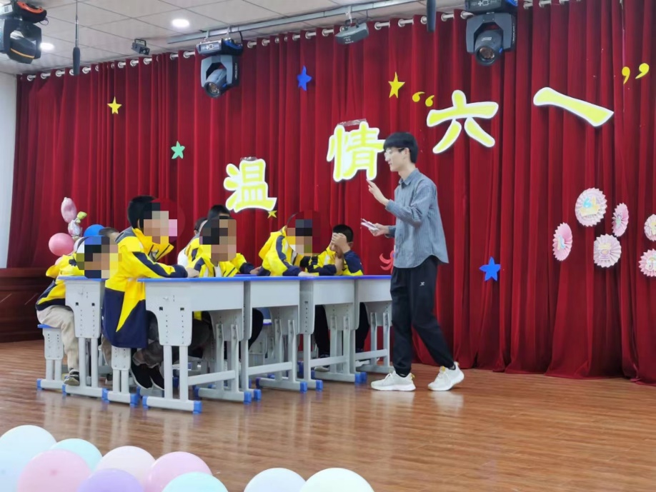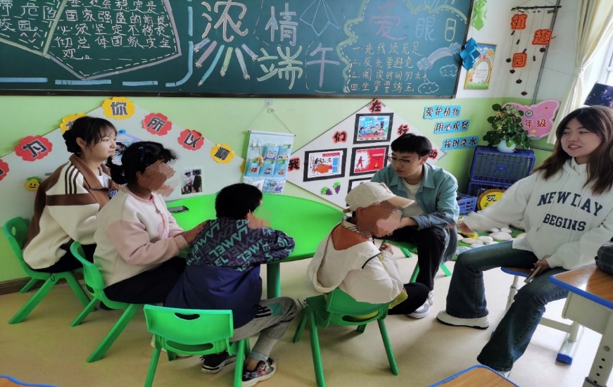 5月29日下午,见习生分九组走进班级、组织活动,体验教师角色,观察班级环境创设,与特殊儿童交流互动。同学们用心在见习班级开展活动,虚心向教师请教、耐心观察特殊儿童。在此次活动的整个过程当中,同学们纷纷表示学到了书本上没有的知识、积累了宝贵的实践经验、受益匪浅。如,第四小组在班内组织开展绘本表演、“击鼓传花”、民族舞蹈等活动,小组成员付喜悦讲到:“进班密切接触特殊儿童,与特殊儿童组织活动有利于丰富我们的实践经验,拓展我们的视野,让我们亲身体会到每一个特殊儿童都是不一样的,能够更切身地感受特殊儿童地行为特点、认识模式和情感需求,从而将理论知识更好的运用到实际情境中,深化对专业知识地理解和掌握。”第六小组以音乐律动为主题贯穿活动始终,在活动中模拟超市购买情景,帮助特殊儿童提升生活技能和认识能力。小组成员何克荣表示:“虽然我们提前做了详细的活动计划,但是在实际中实施起来还是遇到了许多在我们意料之外的事。在这次活动中我们积累了很多实际经验,相信在之后的学习和未来的工作中能够运用到。”
