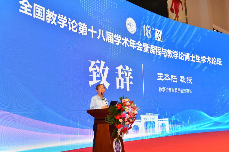王本陆对支持本届学术年会的各界同仁、主办单位表示感谢,他介绍了教学论专业委员会近年来的发展状况,肯定了教学论学术年会在大力推进教学论学科方面的重要作用,强调了高质量学术交流的办会宗旨。