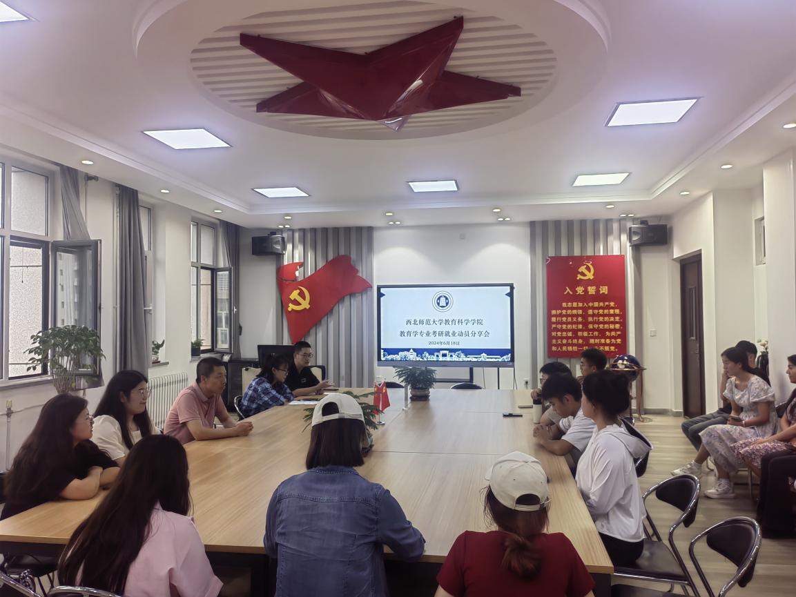 为推进公司教育学专业本科生高质量升学与就业,6月18日晚,在新校区弘文楼501会议室举行教育学专业2024年考研就业经验分享会,公司副经理高建波、教育学系副主任毛耀忠、2021级教育学班全体同学和部分2020级教育学班员工代表参加分享会。