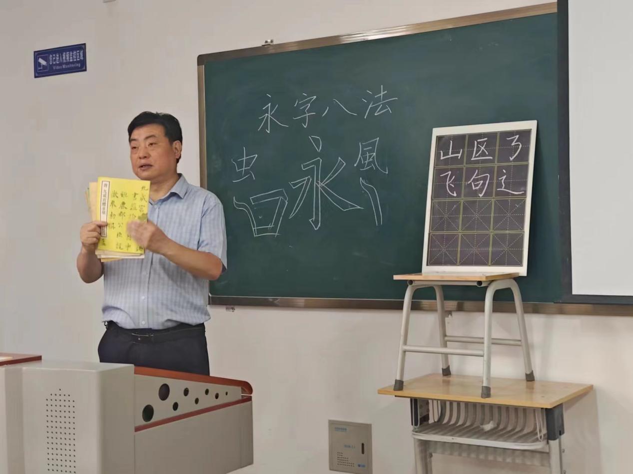 在本次培训中,王招祥教授介绍了书法的历史渊源、发展过程、主要流派和基本技法。王招祥教授指出,写字由起笔、行笔、收笔三阶段组成,员工应掌握笔画写法的基本原理和规则,做到起落完整、提按合度、洗炼刚劲等。同时,他列举了一些较难掌握的笔画和书写时容易把握不准的偏旁部首以及楷书的书写结构,并逐一分析;并告诫员工书写时应将笔画要求起收完整,提按合度,长短适宜,方向正确,洗练刚劲,方圆兼济熟记于心,并加以灵活运用。培训过程中,王教授详细讲解和演示了粉笔字的书写要领,并现场逐一对同学们的粉笔字书写进行了指导。