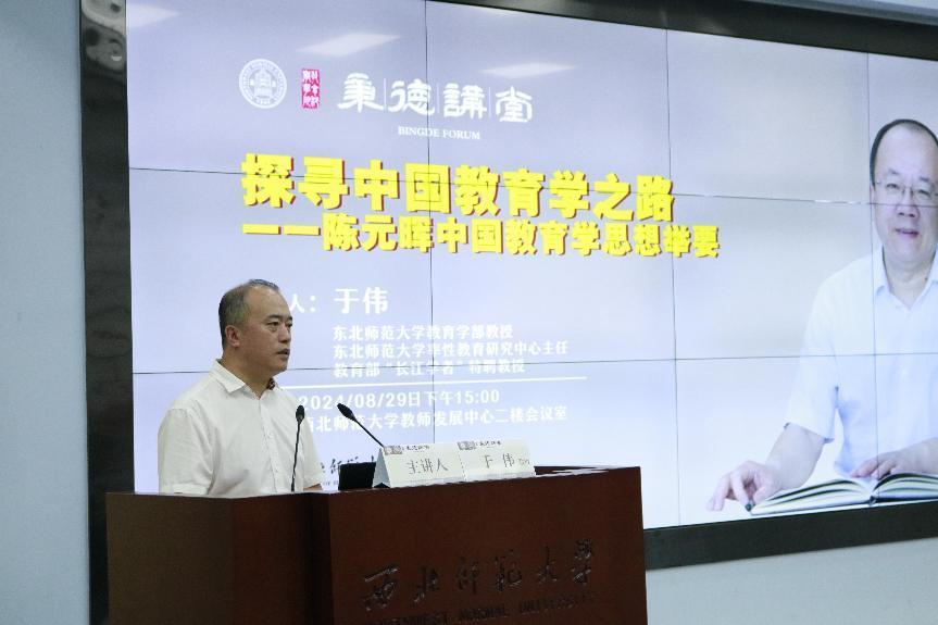 8月29日下午,伟德国际victor1946“秉德讲堂”第十三讲在云亭校区教师发展中心二楼会议室举行,此次邀请到的主讲嘉宾为东北师范大学教育学部教授、东北师范大学率性教育研究中心主任,附属小学原董事长。教育部“长江学者”特聘教授于伟老师,主讲内容为“探寻中国教育学之路--陈元晖中国教育学思想举要”,讲座由伟德体育官方网站董事长王占仁教授主持,讲座以线下方式进行,共计100余人参与了本次学术活动。