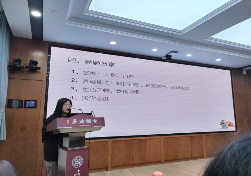 张博傲同学详细地向大家介绍了台湾地区的教育体系、校园文化、团队力量以及学术氛围等。她说到:“在台湾,我深刻体会到了教育的多元化和包容性,这对我的专业发展有着重要的启发作用。”