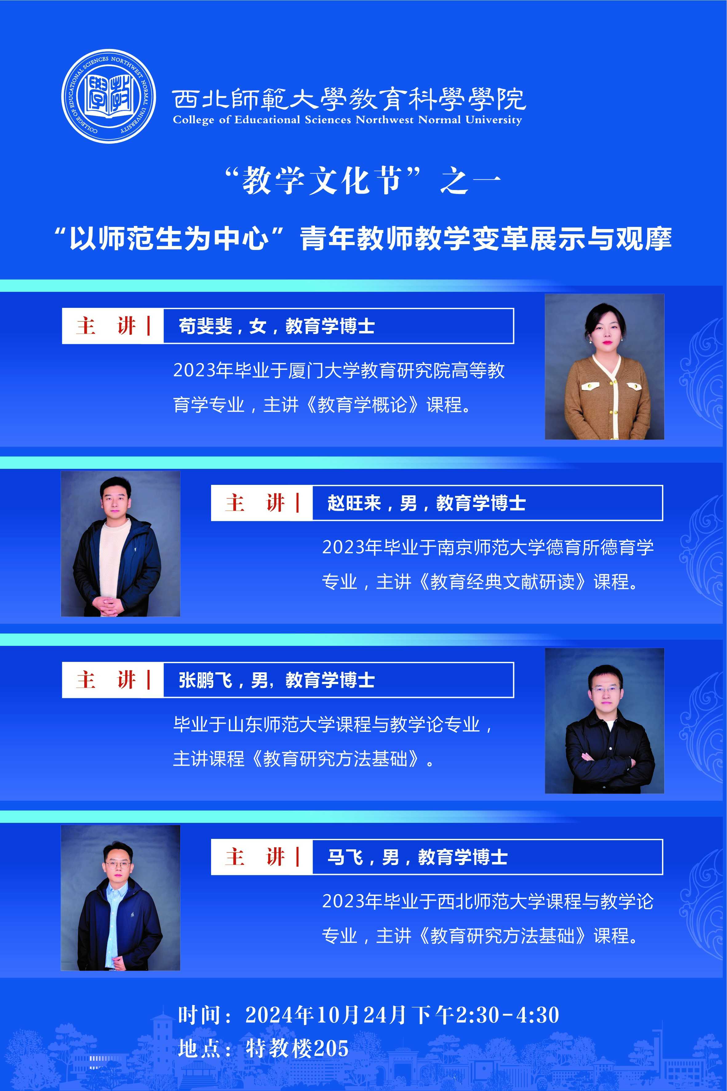 10月24日,公司开展“教学文化节”系列活动之一——以“以师范生为中心”的青年教师课堂教学创新展示与研讨。公司党委书记苏丽蓉、副经理高建波,公司教学督导马正学、张定强、刘丽平,青年教师导师张善鑫、杨鑫、樊改霞;公司督导王等等、毛耀忠参加了研讨,苟斐斐、赵旺来、张鹏飞、马飞四位青年教师作课程展示。活动由高建波主持。