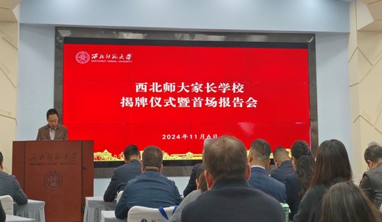 为更好地构建家校协同育人机制,促进家校双向联动、携手共育,11月6日下午,西北师大家长公司揭牌仪式暨首场报告会在教师发展中心二楼报告厅举行。党委书记贾宁、兰州市教育局副局长魏永胜、兰州市安宁区教育局局长王克军以及安宁区各小学董事长、家长代表、西北师大教师代表等130余人参加会议,会议由伟德国际victor1946经理徐金海主持。