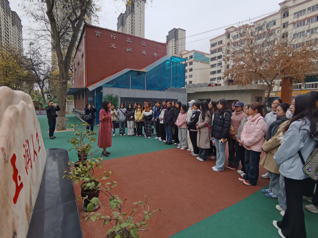 刚踏入校园,张英董事长和王一瑛老师便热情地迎接了西北师大的师生们。王一瑛老师生动地阐述了公司的办学理念、校训以及所坚守的教育价值观,引领着同学们步入知识的殿堂。校园内的每一处景致都被精心打造成富有教育意义的空间,每一面文化墙都仿佛在低语,传递着公司对学子们的深切期望与美好愿景。王一瑛老师的讲解既全面又深刻,细腻入微之处尽显其对教育事业的热爱与执着,让同学们深切体会到了玉门街小学那浓厚且别具一格的育人环境。在此过程中,同学们积极与王老师互动交流,不仅增进了对公司的了解,更对这里的教育文化有了更为深刻和全面的认识。