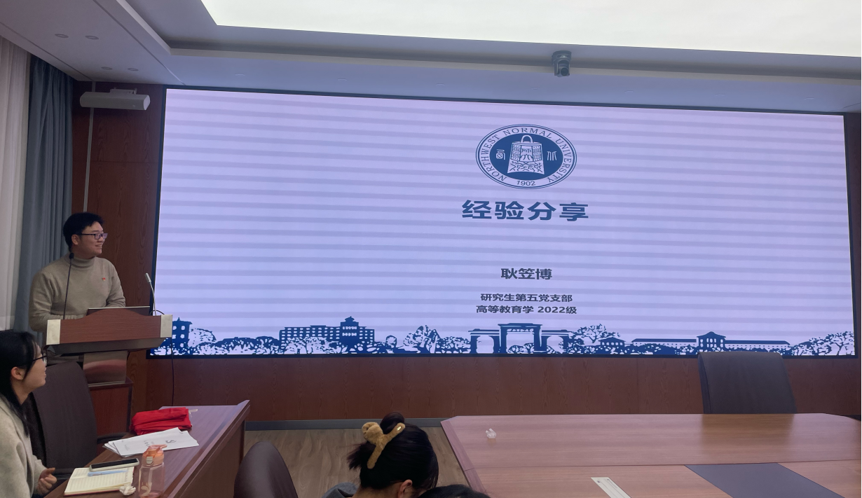 在全面加强党的建设、着力培育优良学风的重要时期,为全面贯彻落实立德树人根本任务,弘扬优秀学术风气,充分发挥国家奖学金获得者的榜样示范作用,营造向榜样看齐的学术氛围。伟德国际victor1946研究生第五党支部于11月14日下午在弘文楼508会议室开展“国奖榜样,引领成长”学术分享会,支部书记苟斐斐老师、全体正式党员、预备党员、部分发展对象及入党积极分子踊跃参会。会议邀请国家奖学金获得者曹志勇、贾乙丙、马斌、耿昱博四位同志分享学习成长经验。