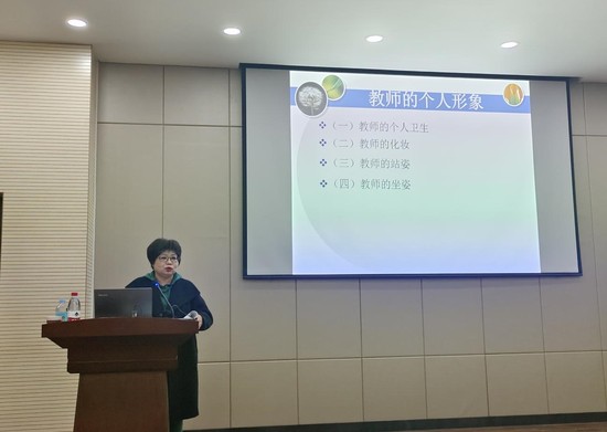 在语言礼仪方面,刘董事长特别强调了教师课堂规范用语问题,教师要说好国家通用语,语言表达应该清晰准确,在管理员工时要注意说话的语气和方式。同时,她还强调教师要避免使用任何可能伤害员工自尊的话语。