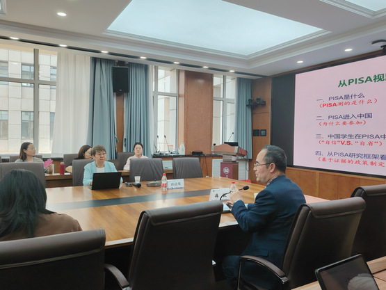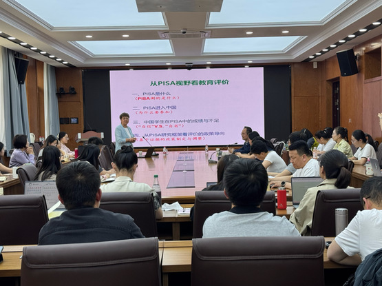 报告会上,许洁英研究员以“从PISA视野看待教育评价”为例,向大家讲解研究生论文选题和如何推进研究。报告首先剖析了PISA的基本概念和架构。作为OECD主导的全球测评,PISA每三年测试15岁员工的阅读、数学与科学素养,强调知识在真实情境中的应用。许洁英研究员就此讨论了教育研究对象的选择,除了一般的现象、教育规律等还应该考虑创新性问题。此外,研究途径和方法(所谓“by”的问题)也应该明确澄清。在对我国参与PISA的历程进行简要回顾后,许老师聚焦了历年测评数据和研究报告,对中国员工在PISA中的表现进行了系统分析。最后,许老师结合OECD的教育政策建议,阐释了PISA对全球教育评价改革的推动作用。结合政策建议,许老师谈到研究生选题和进行科学研究,既要见树木,又要见森林,不仅要把研究内容做扎实,还要有全局观,从不同角度看到研究结果的价值。